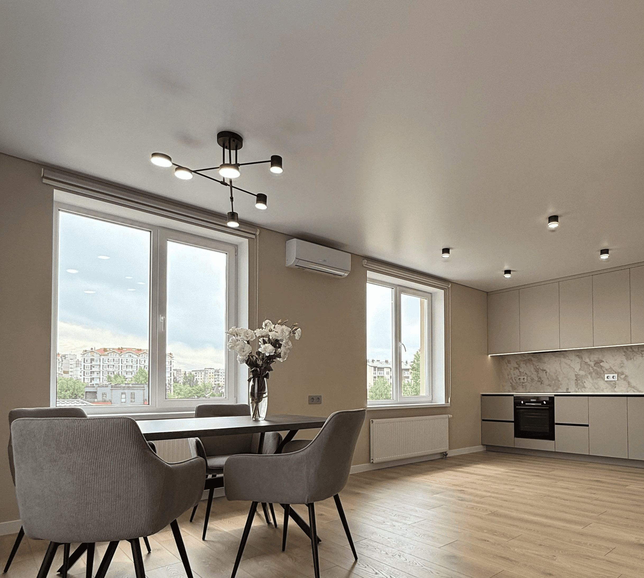 Усі оздоблювальні матеріали мають підвищену зносостійкість, що дозволяє мінімізувати витрати на оновлення ремонту між орендарями та зберігати привабливість квартири.